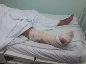 A mulher foi levada com vários ferimentos na perna e internada em estado grave no hospital da região, onde passou por cirurgia. Ela continua internada em observação, segundo o site Rio Brilhante em Tempo Real.