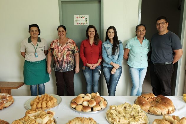 Imagens de: Curso de Pães e Salgados no Centro de Qualificação; equipe trabalhando no Dia da Mulher; prefeito com conselheiras tutelares; e fachada da Unidade de Acolhimento
