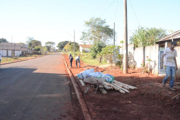 A empresa deve terminar as calçadas em menos de 30 dias, com o calçamento e o plantio de grama incluso. A Sotran foi a empresa que venceu a licitação e presta o serviço. O trabalho começou com a limpeza dos locais e a demarcação do projeto que consta para execução.