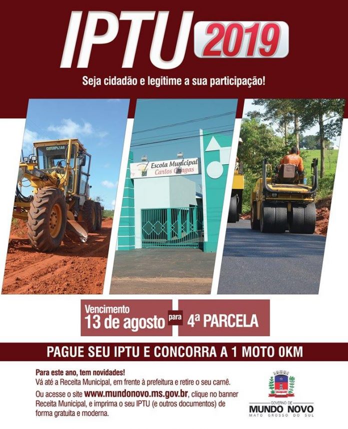 #PraCegoVer – Imagem de obras acompanahada da informação do vencimento da 4ª parcela do IPTU para o próximo dia 13 de agosto.