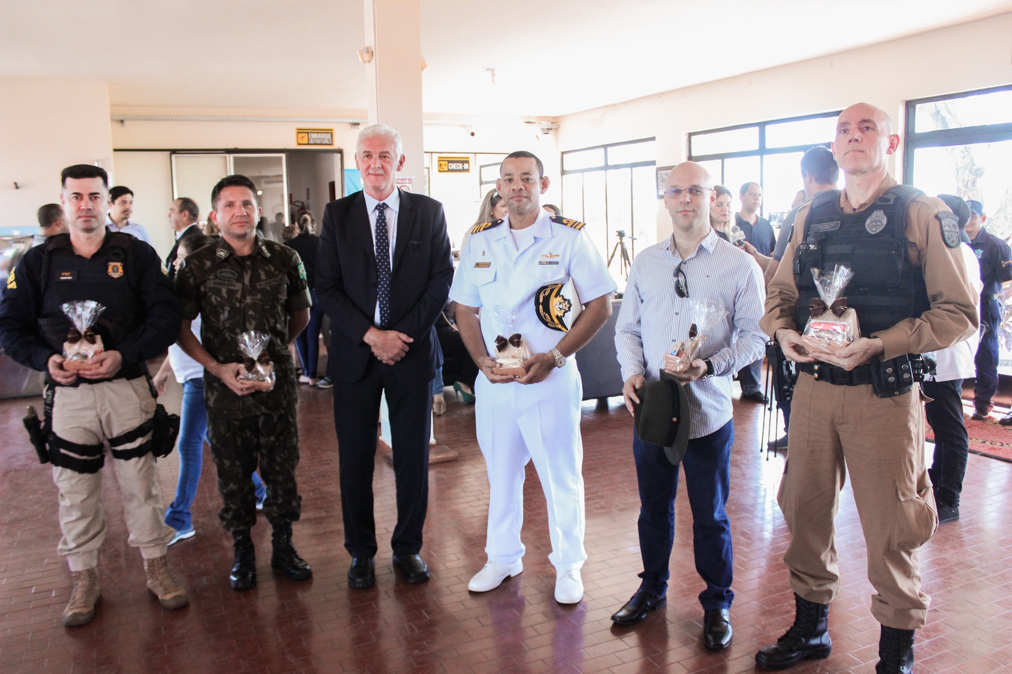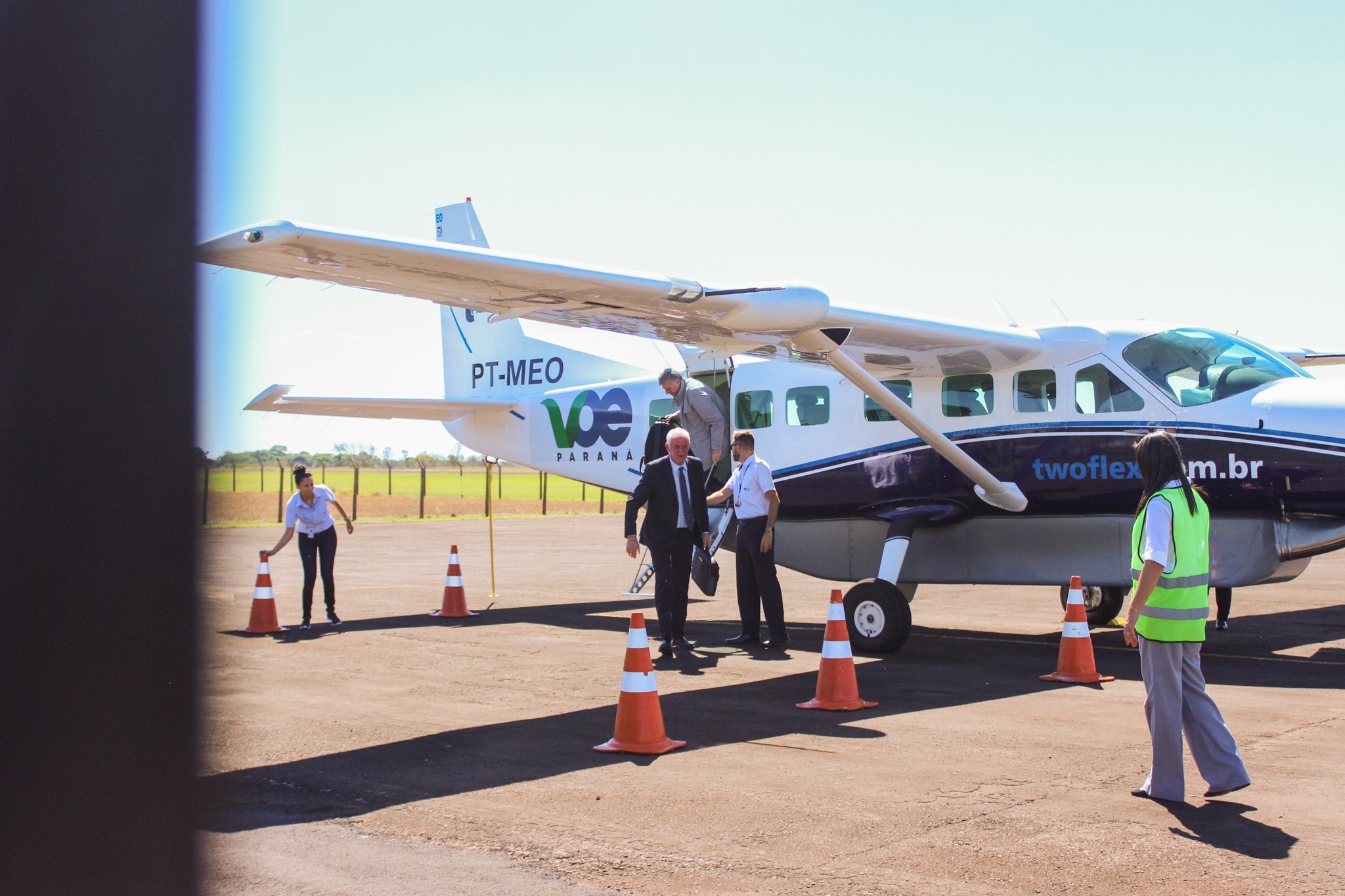 No primeiro voo vindo de Curitiba, esteve presente um empresário do segmento de frigorífico que viajou para tratar de negócios em Eldorado – MS e o Prefeito Heraldo Trento que cumpria agenda em Curitiba desde ontem (21). A coordenadora do aeroporto, Loiane Vasconcellos, fez o primeiro balizamento da aeronave. Os passageiros foram recepcionados pela Fanfarra Municipal ao som do Hino Municipal, a Miss Guaíra Julia Ignácio e misses e mister de várias idades, autoridades civis e militares, empresários brasileiros, paraguaios, prefeitos da região, vereadores e muitos munícipes. O clima foi de muita emoção.