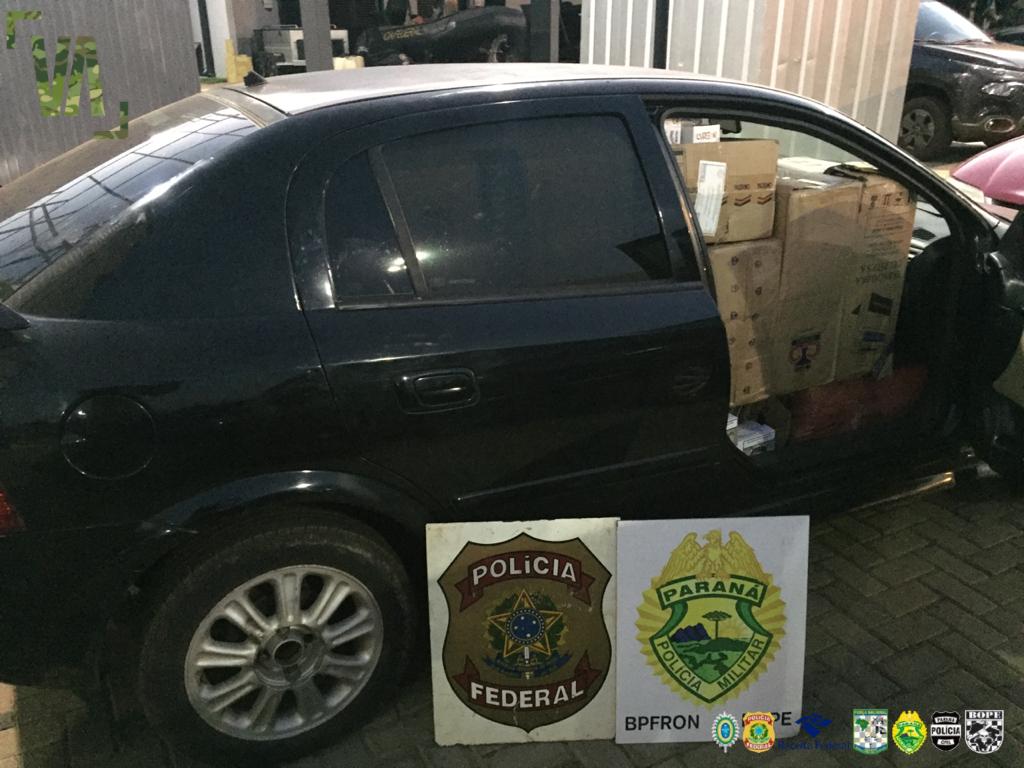 A eficiente ação integrada entre Polícia Federal e BPFron resultou na apreensão de oito veículos carregados com aproximadamente 350 caixas de cigarros contrabandeados, acarretando um prejuízo total aproximado de R$ 1.000.000,00 ao crime organizado.