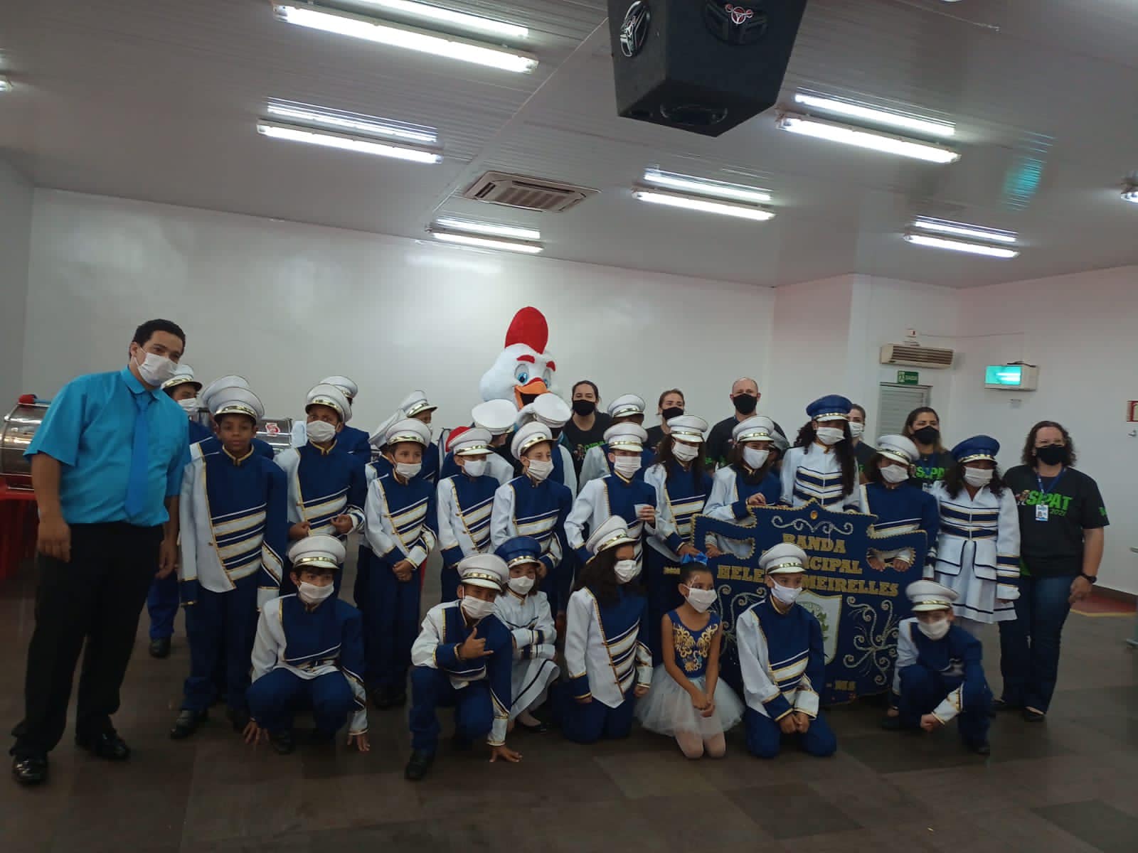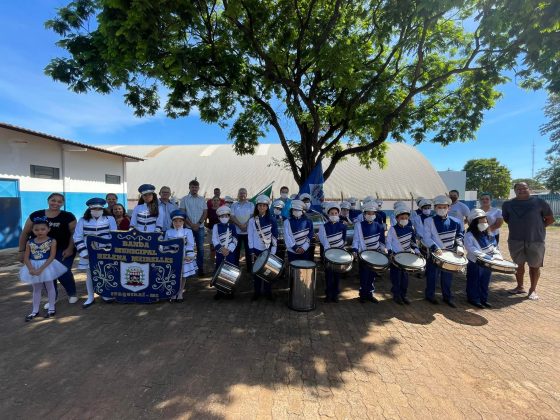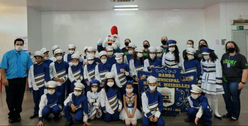A banda é formada por 32 alunos que estudam na unidade escolar e é conduzida pelo professor Wilson Pereira de Queiroz. A apresentação aconteceu na empresa Bello Alimentos durante a abertura da Semana Interna de Prevenção de Acidentes – 6º SIPAT, a convite da vereadora Maria da Bello.
