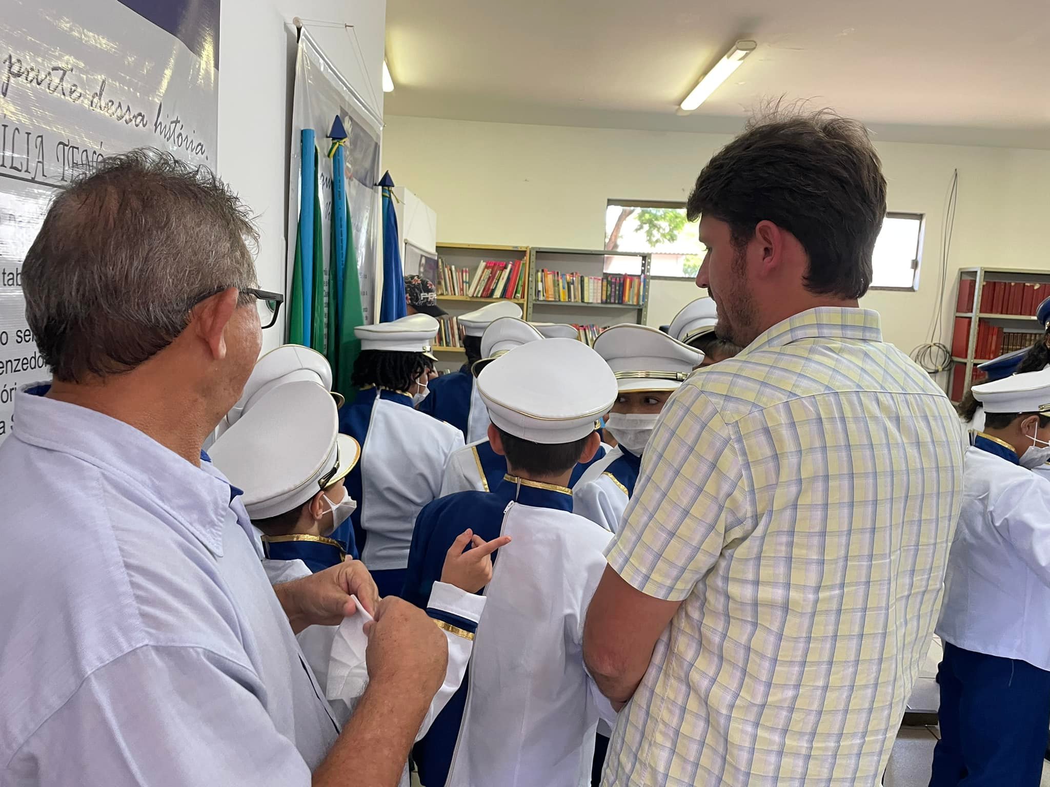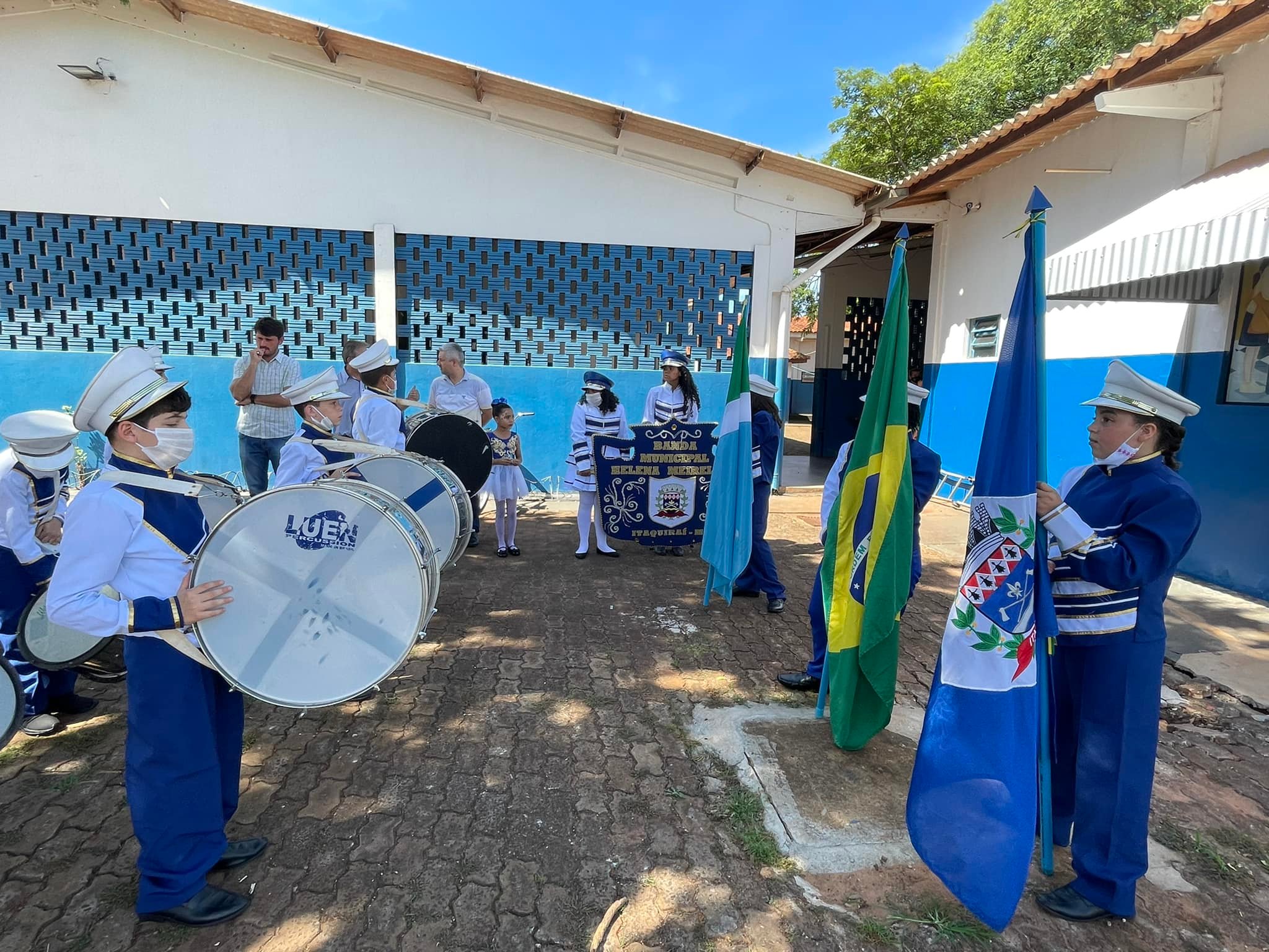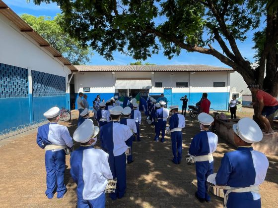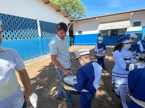 Na tarde de ontem (22), acompanhado do vereador Jeferson Lopes, do diretor de cultura, Professor Eurico, pais e servidores da Escola Municipal Jardim Primavera, o prefeito Thalles Tomazelli esteve acompanhando os preparativos para a primeira apresentação da fanfarra municipal.