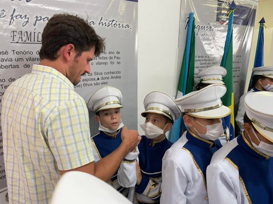 Prefeito Thalles Tomazelli acompanhou preparativos da fanfarra municipal para a primeira apresentação