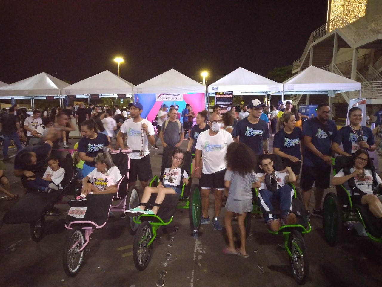 A largada começou com o grupo Pernas Solidárias, onde 10 triciclos foram conduzidos por 20 voluntários em revezamento, permitindo a pessoas com dificuldades de locomoção que participassem do circuito. “O evento foi muito bem organizado e, por ser à noite, foi mais fresco e agradável. Como sempre, fomos muito bem recebidos e toda estrutura está de parabéns”, avalia Mineia Lima, uma das responsáveis pelo Pernas Solidárias.