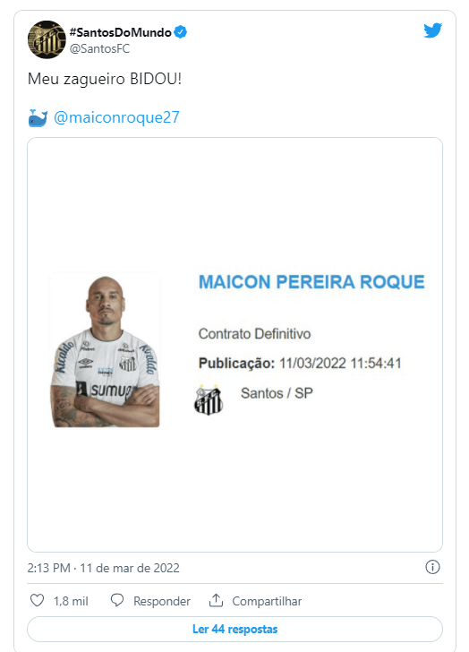 O zagueiro de 33 anos estava no Al Nassr antes de se transferir para o Cruzeiro, onde realizou apenas três partidas. No Santos, Maicon terá a concorrência de Eduardo Bauermann, Kaiky, Velázquez, Luiz Felipe e Robson Reis.