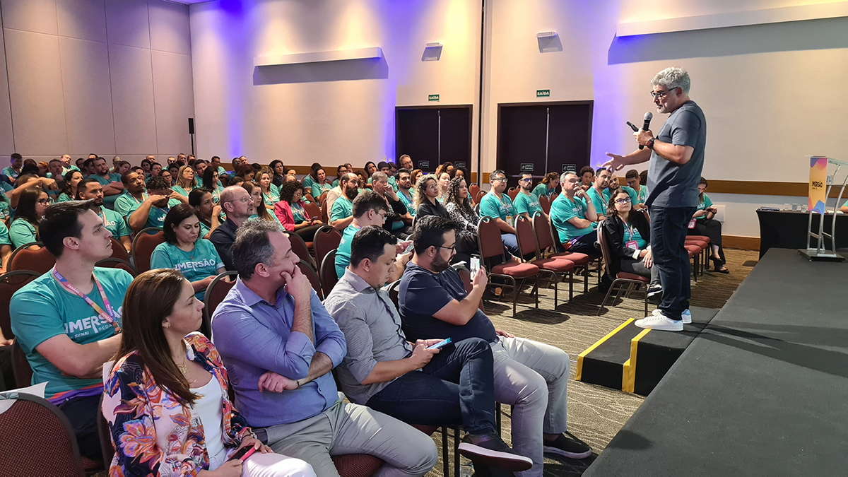 “As pessoas não seguem aprendendo ao longo da vida porque ainda mantêm uma mente baseada na experiência escolar. O que precisamos fazer é nos entender como um aprendente autodirigido. Acabamos misturando o processo de aprendizagem com o processo educacional. Achamos que a gente só aprende se estudar, ou que o aprendizado tem a ver com consumir conteúdo. Minha definição de aprendizado é transformar conhecimento por meio de uma performance melhorada. Só aprendemos quando a gente explicita fazendo algo melhor”, disse o palestrante.