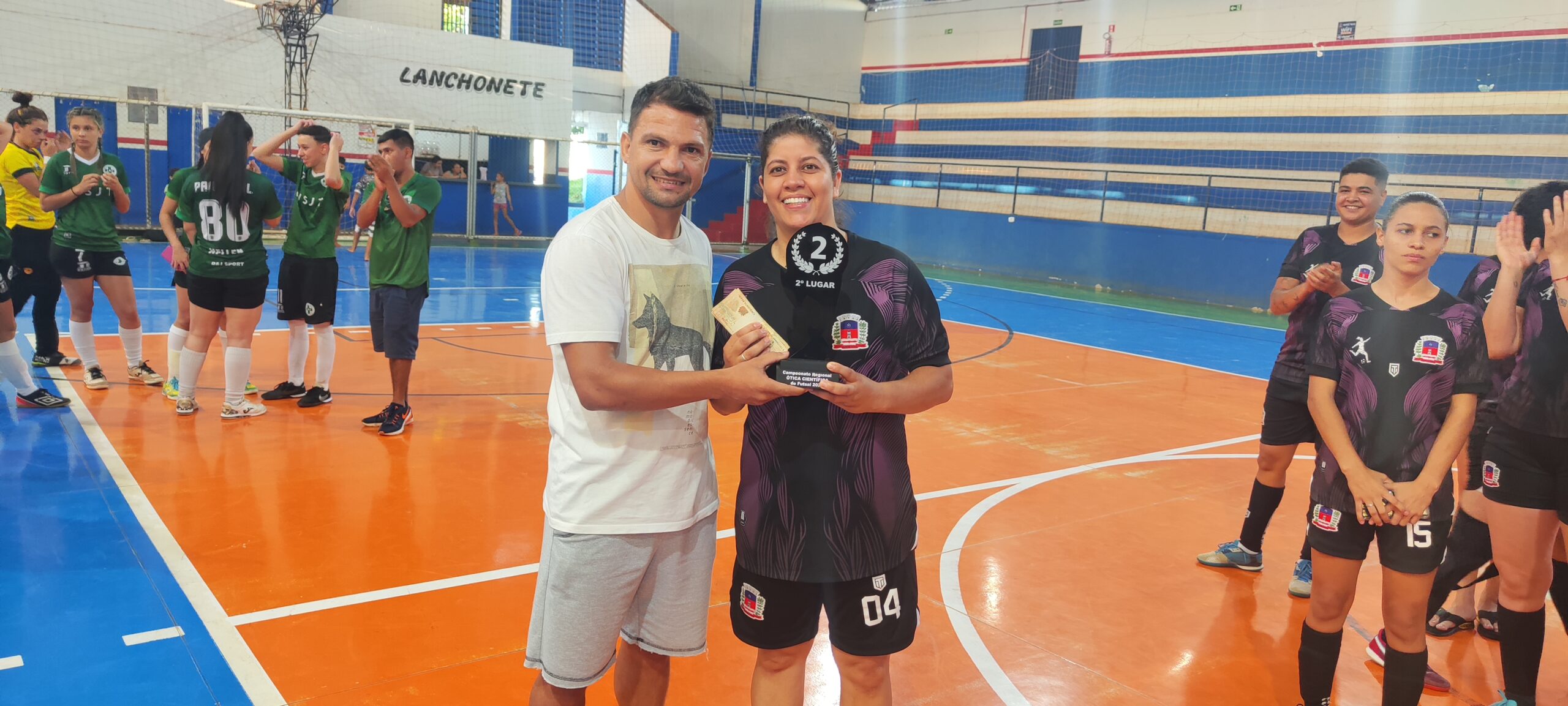 O diretor de esportes, Jhonatan Rancharia, fez a honraria de entregar a premiação as vencedoras juntamente do prefeito Valdomiro Sobrinho.
