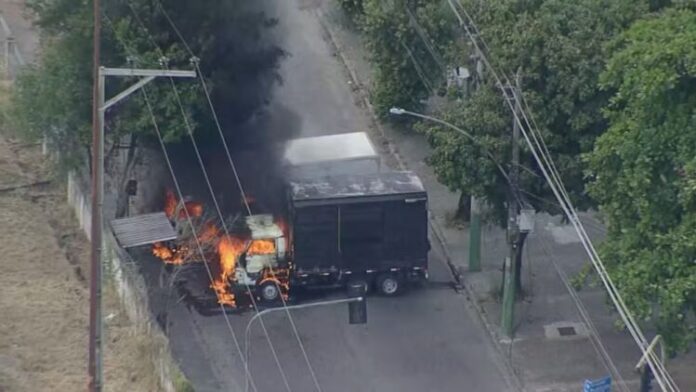 Bandidos atearam fogo a barricadas, a um caminhão e a uma passarela para dificultar a entrada dos agentes nas comunidades.