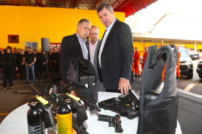 “São instrumentos, ferramentas para a continuidade do bom trabalho que o nosso efetivo exerce com profissionalismo, capacitação, qualidade. Estamos entregando 20 viaturas de última geração para o Corpo de Bombeiro Militar atuar no combate aos incêndios florestais, no Pantanal ou em área de floresta plantada. E 13 viaturas para a Polícia Penal, que tem a função de responder por mais de 23 mil detentos no Estado. Estão recebendo também 700 pistolas e 398 coletes balísticos, que são importantes no exercício da função”, explicou Riedel.