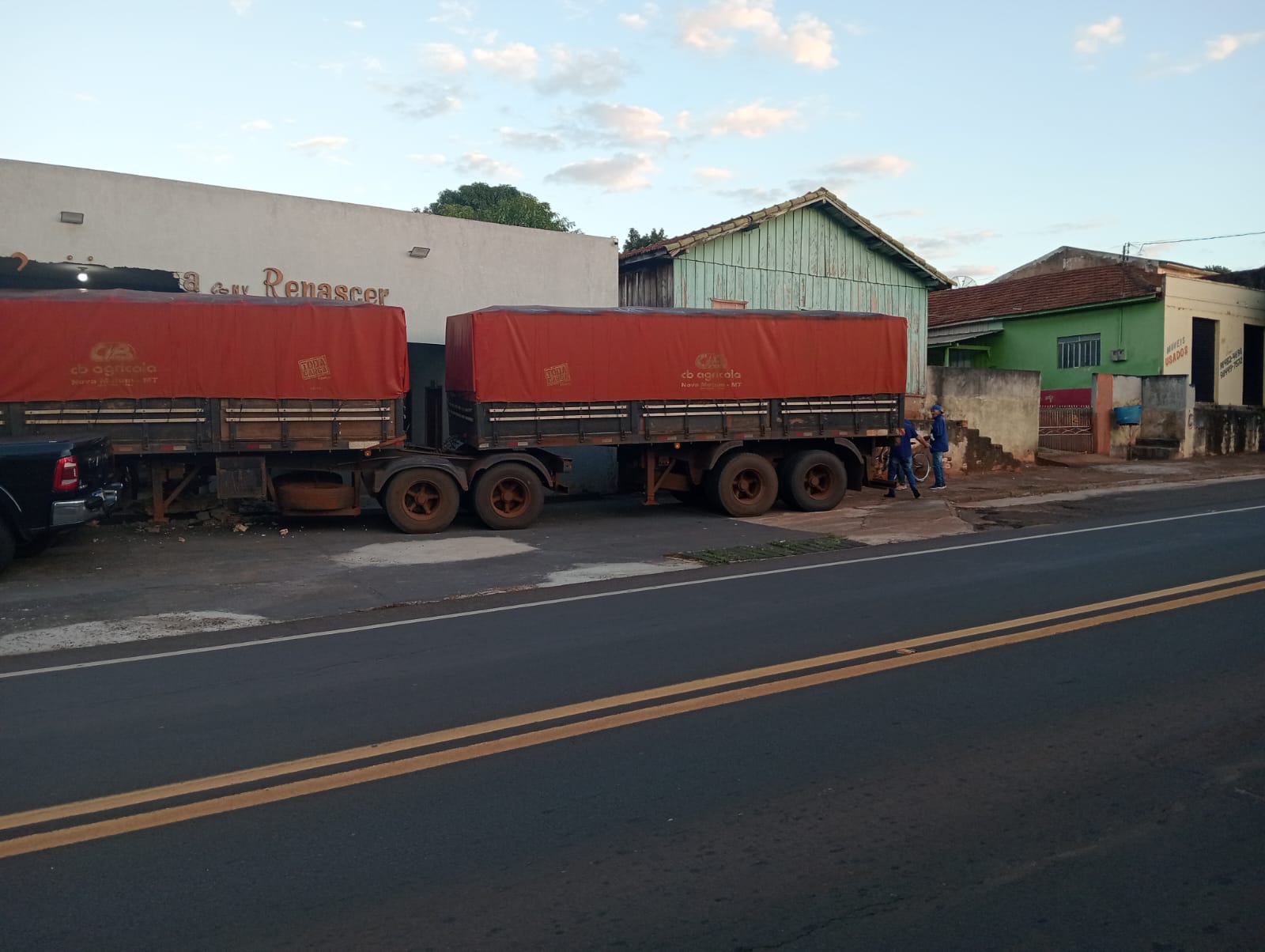 Condutor desce de veículo para tentar arrumar freios de Bitrem, veículo desce desgovernado e colide em padaria