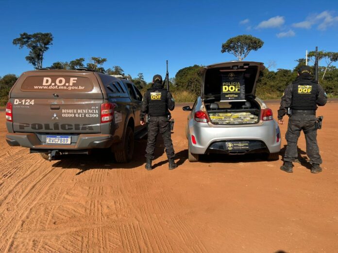 Policiais militares do DOF (Departamento de Operações de Fronteira) apreenderam na última sexta-feira (18), em Iguatemi, um veículo Hyundai Veloster carregado com mais de 330 quilos de drogas. Na ação, um homem de 24 anos foi preso.