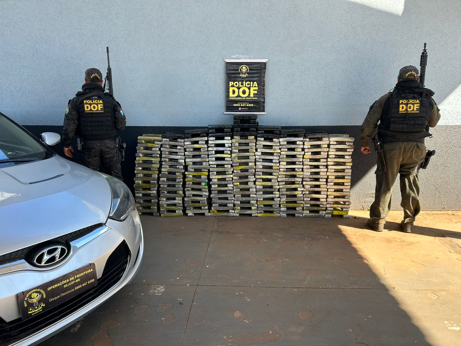 Os militares faziam bloqueio pela MS-295, zona rural do município, quando abordaram o condutor. Durante vistoria no automóvel foram encontrados diversos tabletes de maconha, que após a pesagem totalizaram 336 quilos do entorpecente.