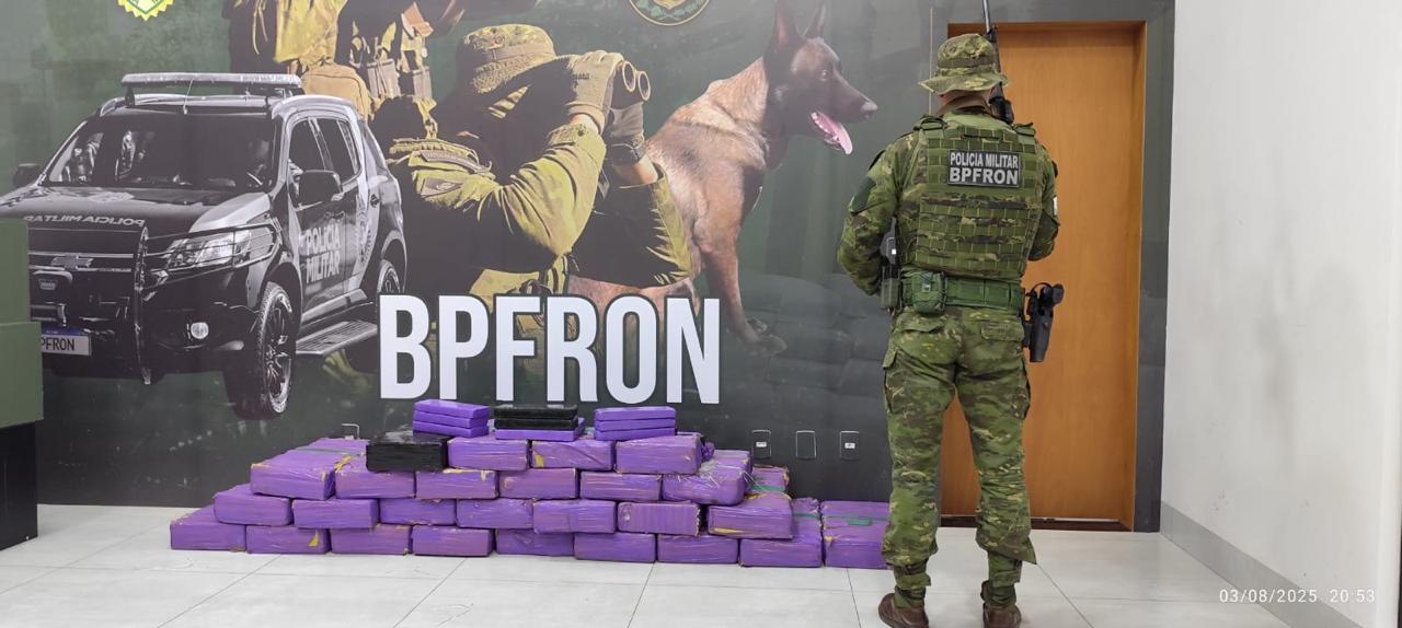 No último domingo (03/08), a Polícia Militar do Paraná por meio do Batalhão de Polícia de Fronteira (BPFRON), no âmbito da Operação Protetor de Divisas e Fronteiras, realizava patrulhamento pela rodovia PR-323 quando, nas proximidades da Garapeira Primavera, visualizaram um veículo Fiat/Palio, de cor branca, trafegando em alta velocidade, que ao avistar a presença policial, freou bruscamente, realizou retorno em local proibido e seguiu em sentido contrário. Os policiais ainda observaram que a suspensão traseira do veículo estava baixa, o que aumentou a suspeita. Diante da situação, as equipes iniciaram acompanhamento tático, logrando êxito na abordagem já dentro da cidade de Perobal. A condutora foi identificada, sendo uma feminina de 18 anos. Em busca veicular, foi constatado que o automóvel estava carregado com grande quantidade de substância análoga à maconha, acondicionada no interior e no porta-malas, que após pesagem totalizou aproximadamente 395,4 kg (trezentos e noventa e cinco quilos e quatrocentos gramas). A mulher informou que havia carregado a droga no Posto Veneza, na cidade de Guaíra, e que o destino seria o município de Umuarama, onde receberia R$ 2.000,00 (dois mil reais) pelo transporte. A mulher, o veículo e o entorpecente foram encaminhados à Delegacia de Polícia Civil de Umuarama para os procedimentos cabíveis. Prejuízo ao crime: R$ 811.800,00