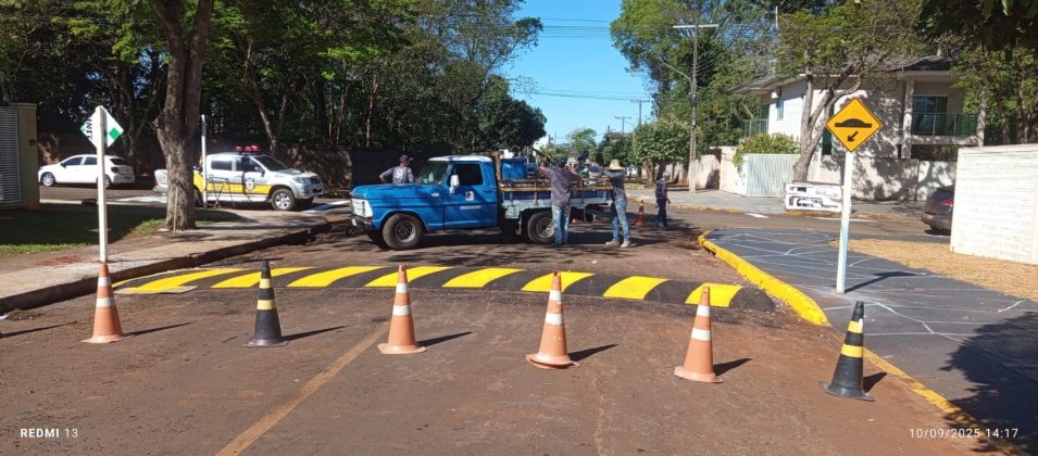 Além disso, a equipe finalizou a pintura de um quebra-molas instalado na quarta-feira (10) em frente à escola KidSaber, na Rua Voluntários da Pátria.