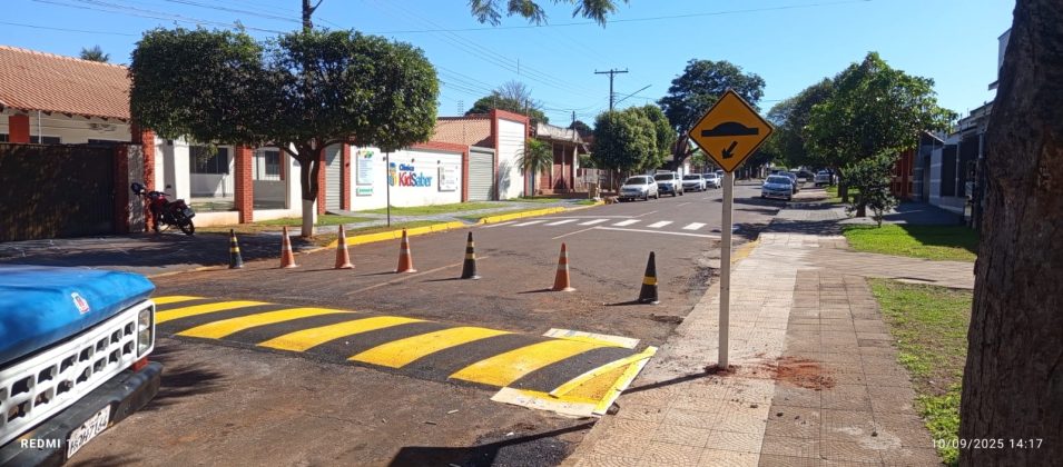 Em outra frente de trabalho, uma lombada foi removida na rua que liga a Escola Estadual Yolanda Ally ao Posto Maringá, buscando melhorar o fluxo de veículos.