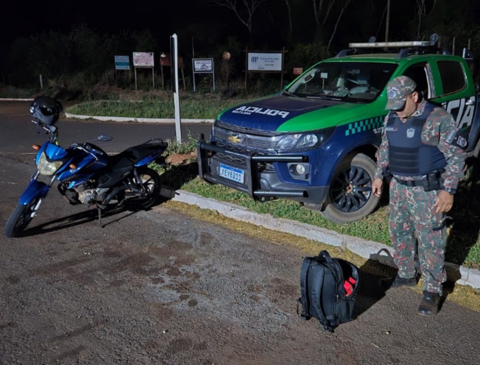Durante a Operação Bocaiúva, uma guarnição da Polícia Militar Ambiental realizava patrulhamento na MS-141 quando abordou uma motocicleta Yamaha/Fazer, de cor azul, com placa de Naviraí/MS.
