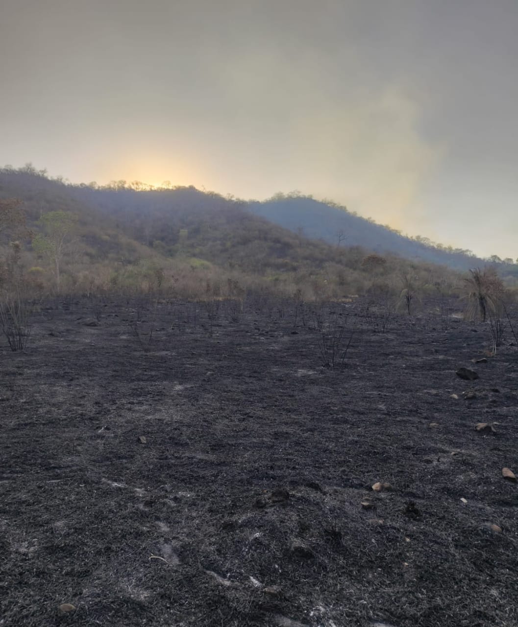 O fogo teve origem em uma queimada controlada de folhas secas que saiu do controle com os ventos fortes, atingindo 194 hectares, sendo 120 hectares de vegetação nativa, e se alastrando por 22 propriedades vizinhas. As equipes do Prevfogo e do Corpo de Bombeiros atuaram no combate às chamas.