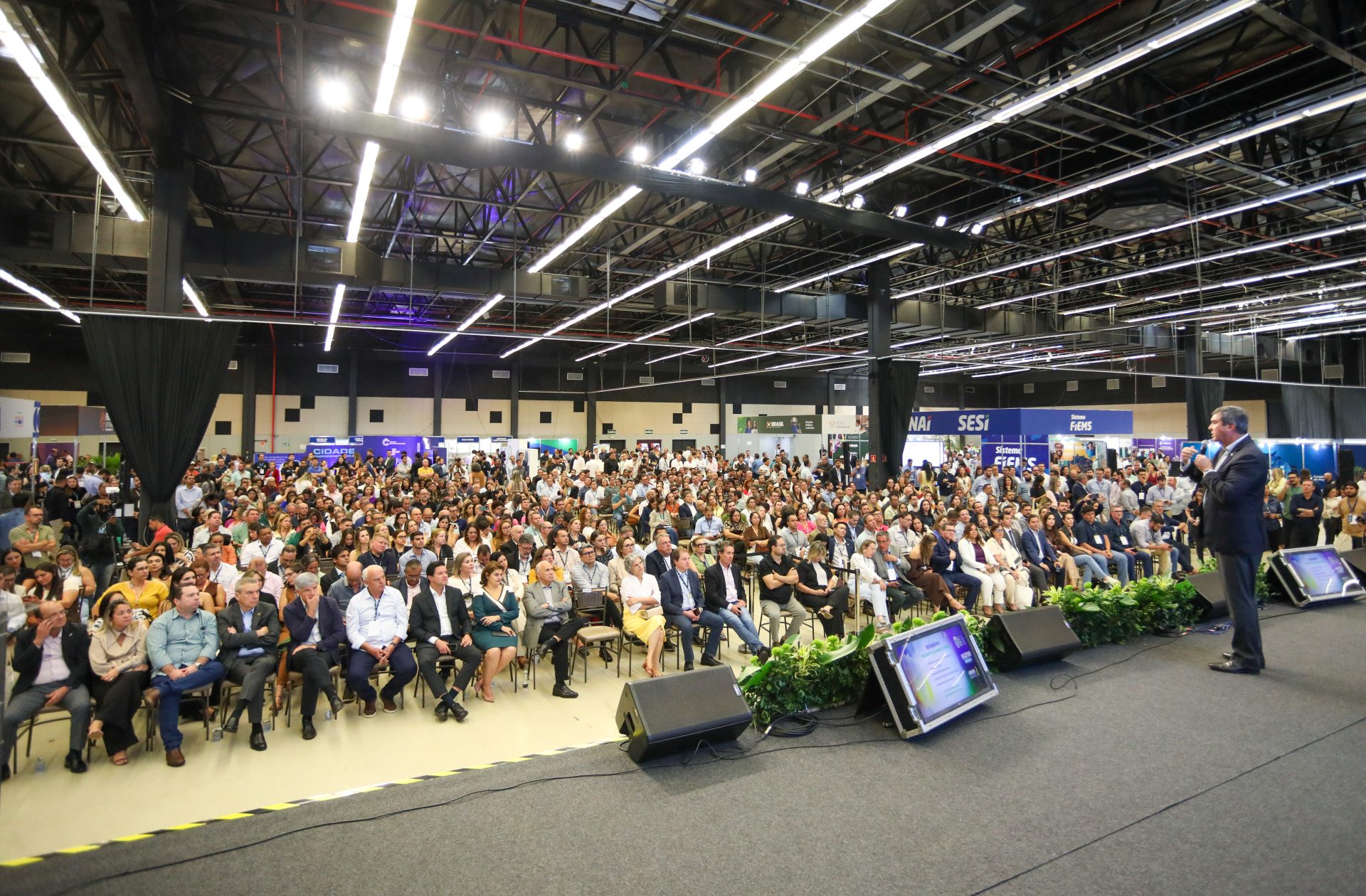 O governador Eduardo Riedel ministrou palestra no evento nesta terça, abordadando o tema ‘Desenvolvimento e Gestão Pública’, além de participar da assinatura da entrega dos acordos municipais de gestão do programa Cidade Empreendedora, parceria entre o Sebrae e o Governo de Mato Grosso do Sul.
