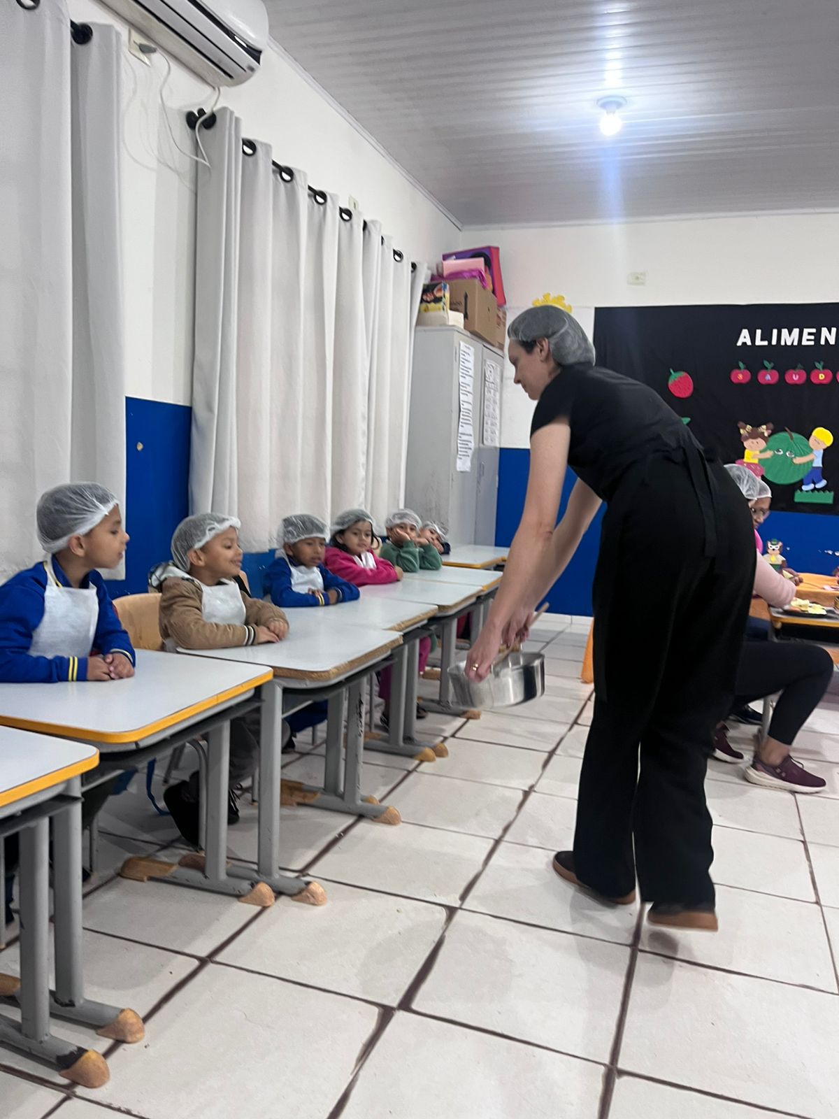O objetivo de um projeto de alimentação saudável é promover o desenvolvimento de hábitos alimentares equilibrados e conscientes, especialmente entre crianças, incentivando escolhas saudáveis, informando sobre nutrição e sustentabilidade, e prevenindo doenças como obesidade. Para isso, na manhã desta quarta-feira (29), a Nutricionista da secretaria municipal de Educação, Josiane Giaretta, esteve na Escola Arco-Íris e juntamente com as professoras, Andressa, Graciele, Andréia, Terezinha, promoveram a ação baseada na história “Cachinhos Dourados”, e no mingau de aveia com maçã como uma ótima atividade pedagógica para a educação infantil.