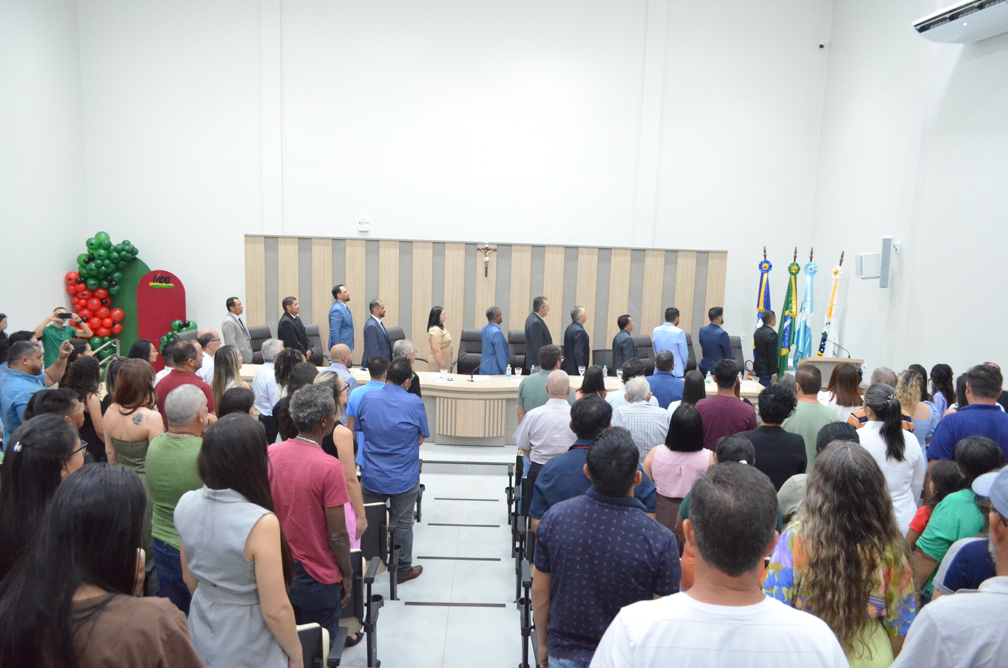 Presidente da Câmara, Claudenir Chacal (PP), deu posse a Heliomar e deve receber reforma administrativa para votação (foto: Jandaia Caetano/Tv Sobrinho)