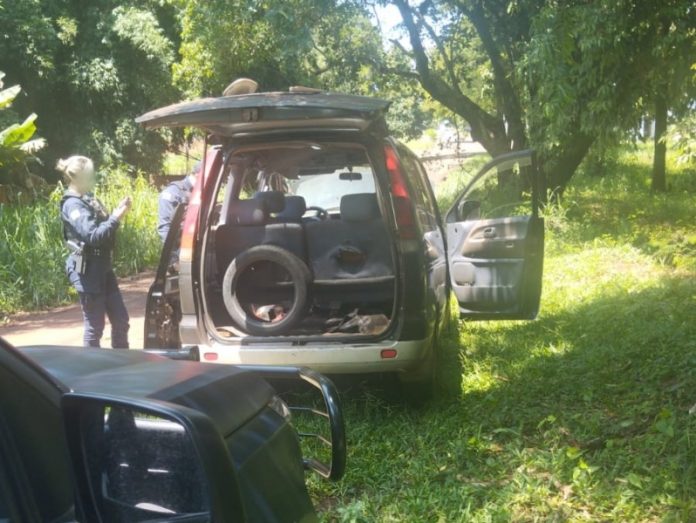Mais tarde, por volta das 11h30min, a Guarda Municipal recebeu a informação de quem um carro estava abandonado em uma rua no Parque Hortência. No local, os agentes confirmaram se tratar do Toyota tomado de assalto horas antes.