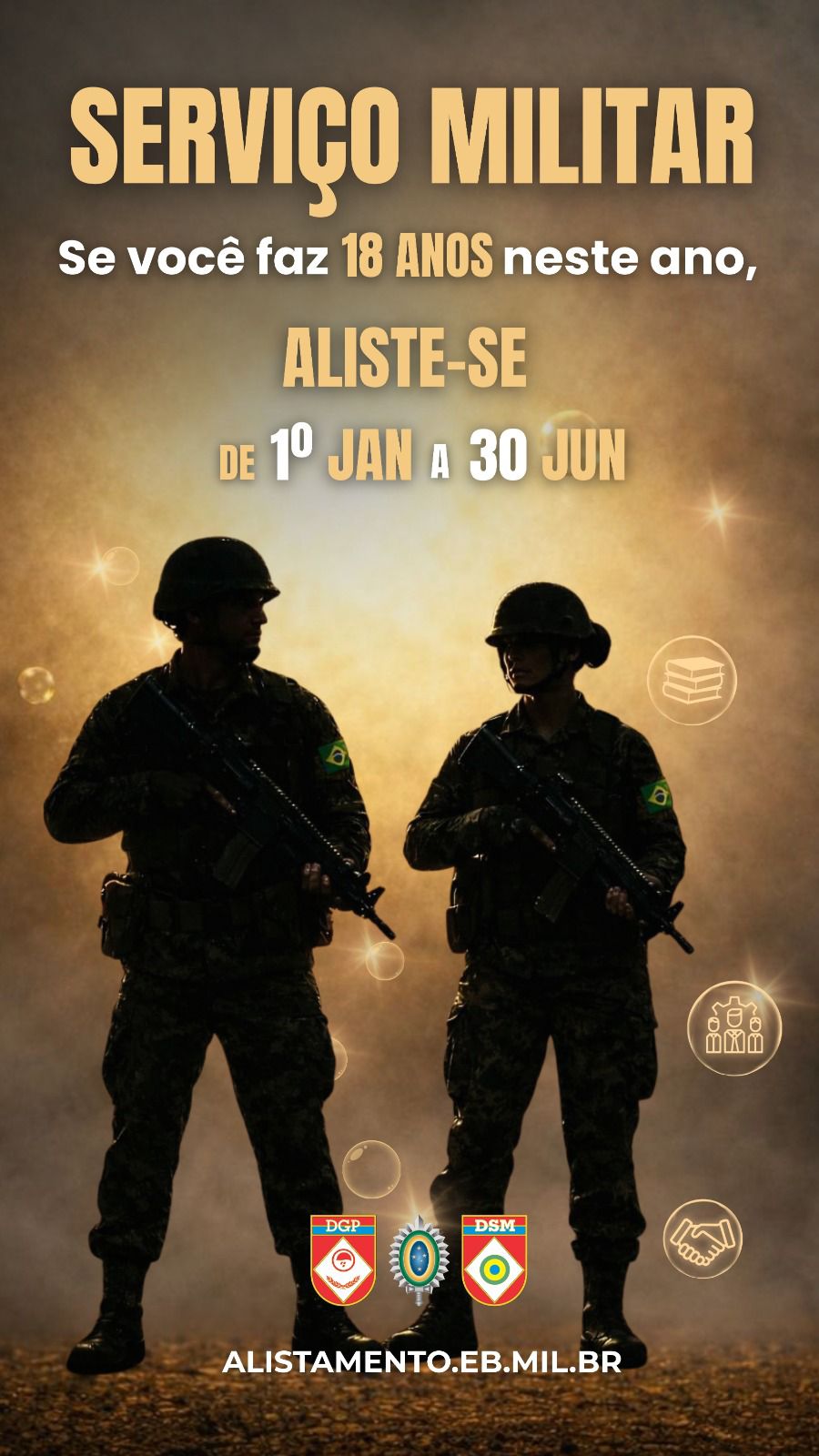 Aqueles que completam 18 anos em 2026, deverão se alistar de forma obrigatória.