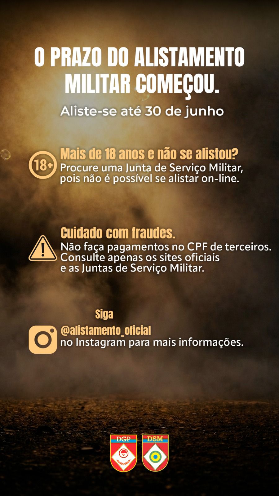 O site do alistamento é o alistamento.eb.mil.br e o dia limite é 30 de junho.