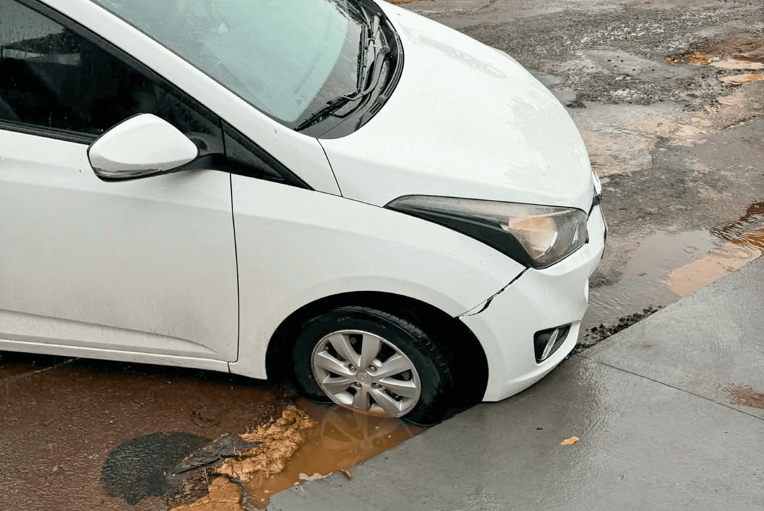 Segundo a moradora, em janeiro o buraco em frente a sua residência teve uma medida paliativa, a seu pedido, realizada, com areia e pedra, mas na mesma semana a intervenção foi levada com a chuva. A chuva da última sexta acabou cobrindo o buraco e contribuiu para que o veículo conduzido por ela caísse no local. Ela teve o prejuízo da avaria do mesmo.