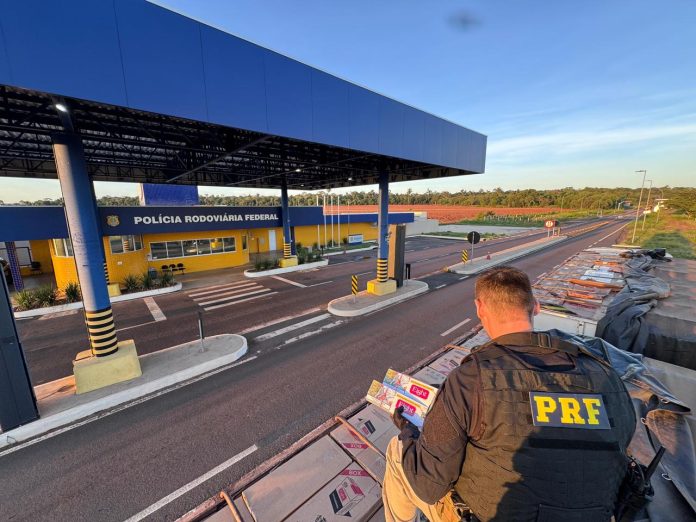 A Polícia Rodoviária Federal (PRF) apreendeu, na manhã desta segunda-feira (23), uma grande carga de cigarros contrabandeados do Paraguai durante fiscalização no quilômetro 6 da BR-487, em Alto Paraíso (PR). Ao todo, foram contabilizados 600 mil maços do produto de origem estrangeira.