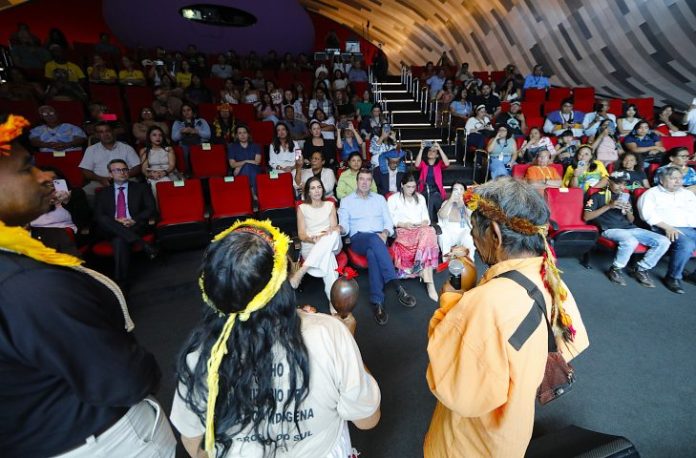 Debaixo dos cânticos entoados pelo mbaraka, a reza Ñembo’e abençoou a abertura do Abril Indígena, mês voltado ao fortalecimento, valorização e reconhecimento dos povos originários em todo o Estado. Na tarde de quarta-feira (1), o auditório do Bioparque Pantanal foi tomado por cultura, tradição e respeito aos povos indígenas. Na plateia, representantes das oito etnias que vivem no Estado: Guarani Kaiowá, Guarani Ñandeva, Terena, Kadiwéu, Guató, Ofaié, Kinikinau e Atikum, celebraram os avanços nas políticas públicas, a promoção da cidadania e a inclusão social que chegou aos territórios.