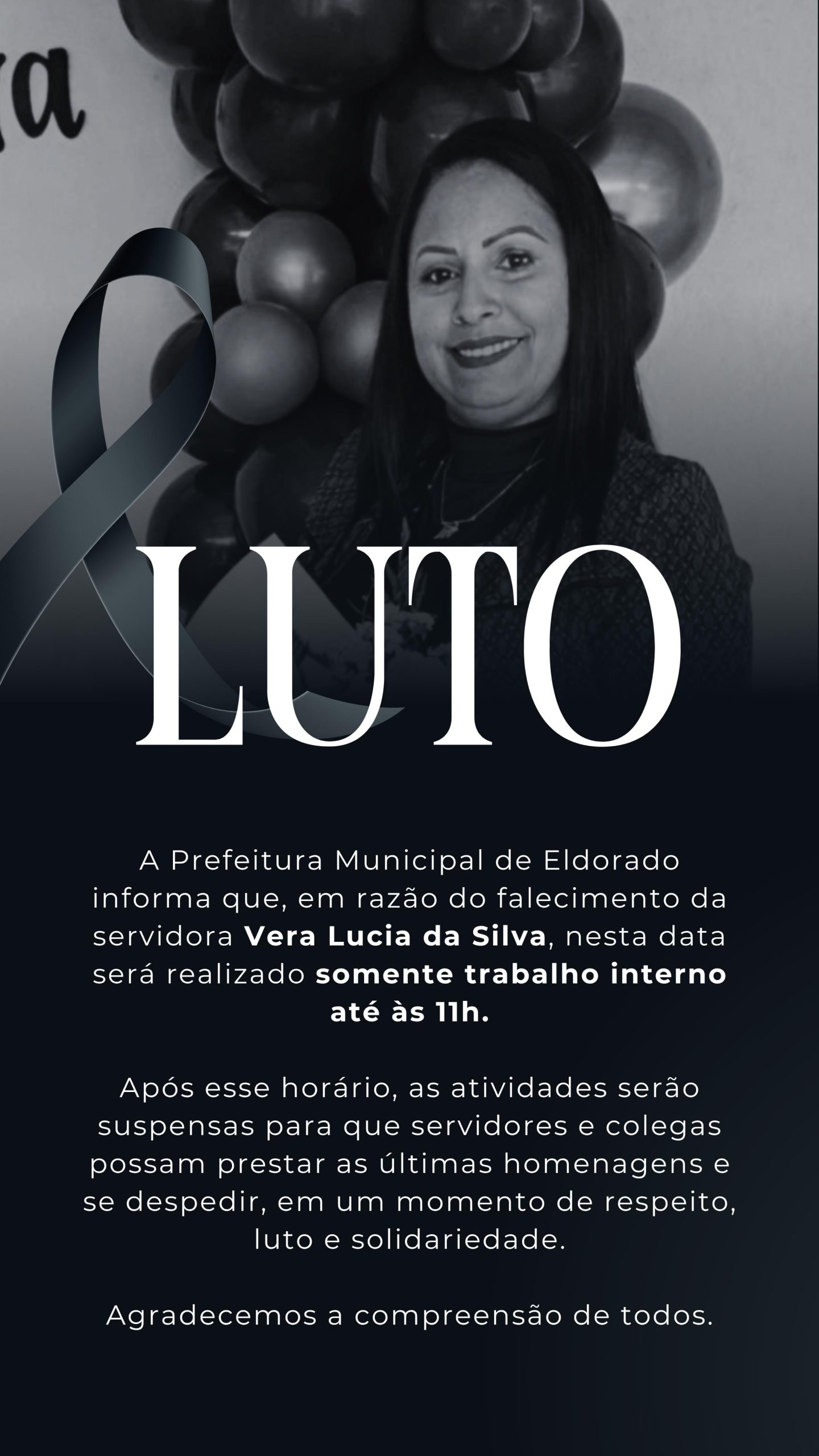 A prefeitura de Eldorado postou nota de luto e informou a população que o atendimento será apenas interno até as 11h.