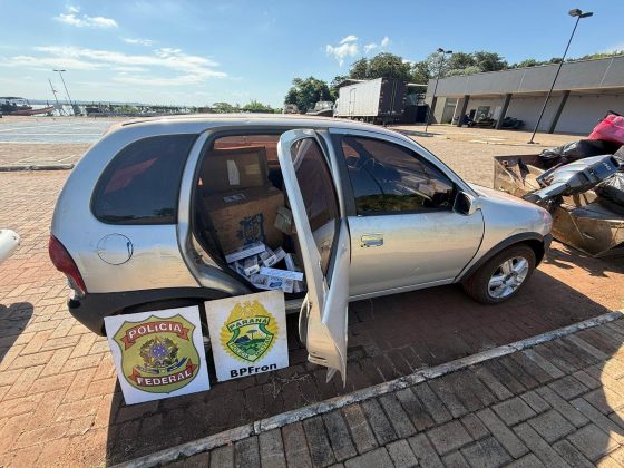 Em vistoria aos veículos e a embarcação, foram localizados 3.500 pacotes de cigarros contrabandeados do Paraguai, resultando em prejuízo estimado de R$ 300.000,00 (trezentos mil reais) ao crime organizado regional.